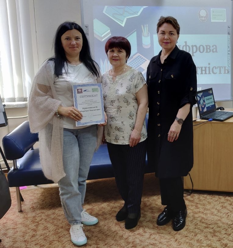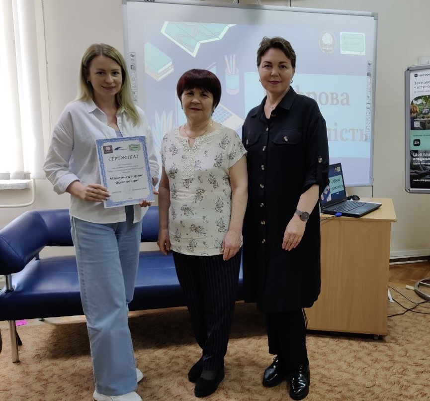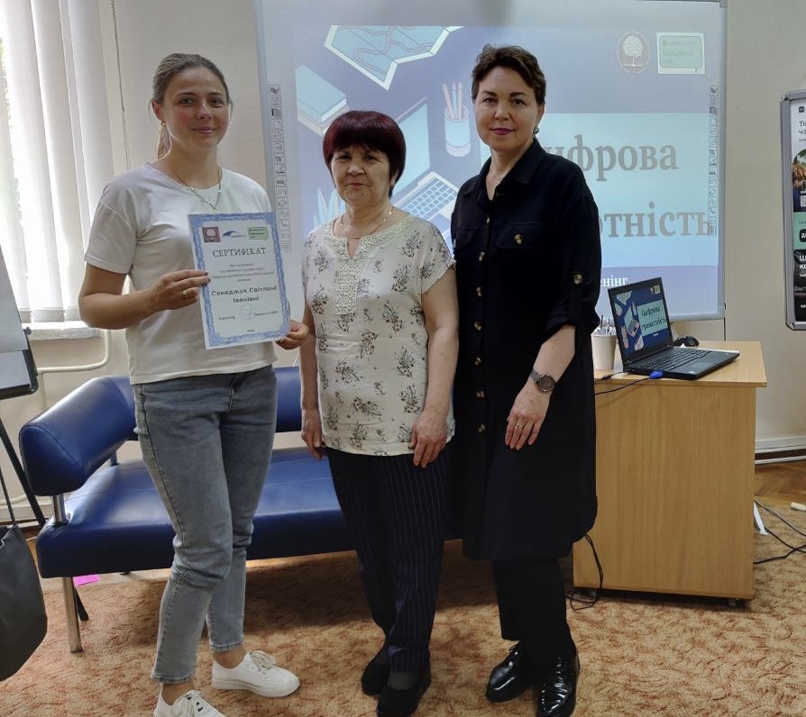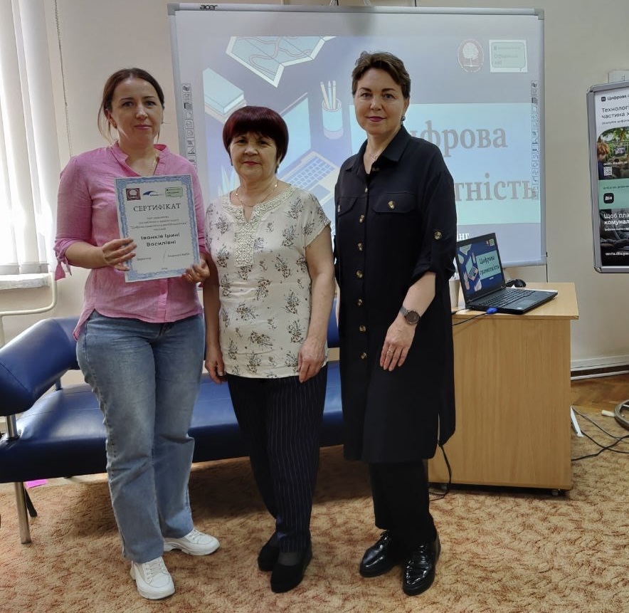По закінченню навчання директорка бібліотеки Людмила Бабій вручила учасникам сертифікати випускника навчального курсу цифрової грамотності.