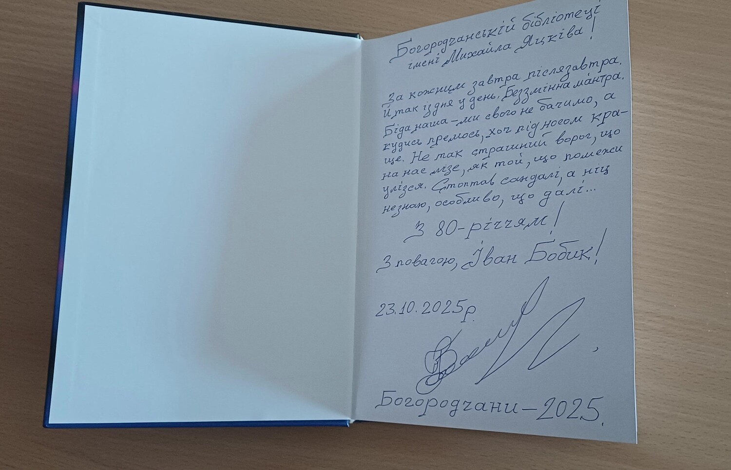 Щиро дякуємо Івану Бобику за подаровану книжку для читачів бібліотеки – за щирість, за пам’ять, за слово, яке лікує.