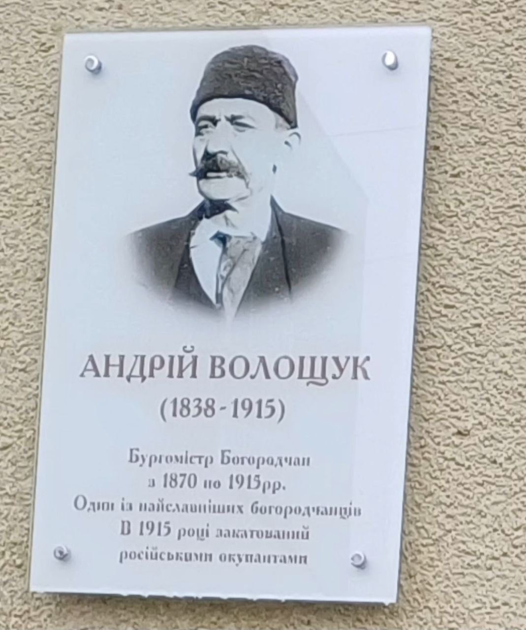 16 листопада у Богородчанах відбулося відкриття анотаційної дошки на честь одного з найславніших богородчанців – Андрія Волощука – першого українця, який став бургомістром. Подія стала ще одним значущим кроком у вшануванні видатних осіб, які зробили вагомий внесок у розвиток громади. Анотаційну дошку відкрили на фасаді колишньої літньої резиденції єпископа Станиславівського Григорія (Хомишина), що у Богородчанах по вулиці Грушевського,3. Захід відбувся за участі селищного голови Ростислава Заремби, декана Богородчанського деканату Української Греко-Католицької Церкви отця Івана Мачкодери, отця Петра Диріва, ініціатора акції, письменника і краєзнавця Василя Бабія, місцевих активних жителів, які зібралися, щоб разом віддати шану цій видатній постаті вісторії містечка.У вітальному слові голова селищної ради Ростислав Заремба підкреслив, що обрання Андрія Волощука бургомістром Богородчан в листопаді 1870 року стало історичним досягненням для Галичини. Його перемога на виборах була несподіванкою для багатьох і стала важливим сигналом про зміну політичних настроїв в Австрійській імперії, де домінували польські та німецькі чиновники. Волощук став символом національної гідності та громадянської свідомості українців.«Андрій Волощук мав високу довіру, незаперечний авторитет. Його політика була спрямована на покращення життя простих людей, що принесло йому велику підтримку серед місцевих жителів. Й ми плануємо наступного року відкрити погруддя цій видатній особистості, який направду є одним з найславніших богородчанців», – зазначив Ростислав Дмитрович. Ідея встановлення анотаційної дошки на честь Андрія Волощука належить письменнику та громадському діячу Василю Бабію. За його словами, ця подія є важливою для збереження пам’яті про місцевих діячів, які вплинули на розвиток нашої української культури та нації.